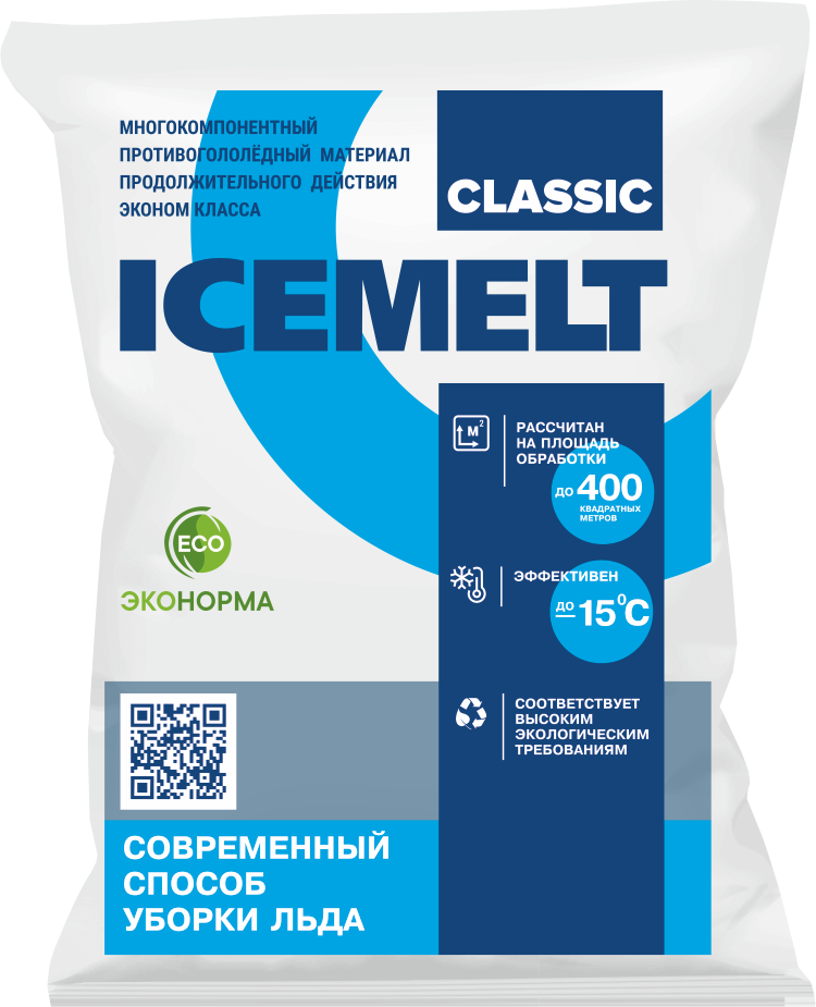 ПРОТИВОГОЛОЛЕДНЫЙ МАТЕРИАЛ ICEMELT CLASSIC, ИМЕЮЩИЙ В СОСТАВЕ ВСЕ НЕОБХОДИМЫЕ ДЛЯ БОРЬБЫ С ЗИМНЕЙ СКОЛЬЗКОСТЬЮ КОМПОНЕНТЫ, СПОСОБЕН ОЧИСТИТЬ СКОВАННУЮ ЛЬДОМ ИЛИ ПОКРЫТУЮ СНЕЖНЫМ НАКАТОМ ПОВЕРХНОСТЬ ПРИ ТЕМПЕРАТУРЕ ДО -15°С.